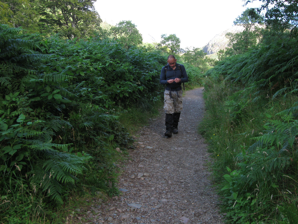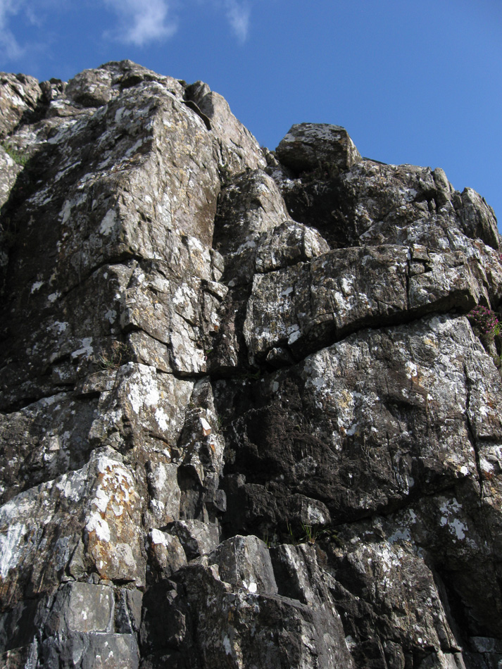 Another poor forecast, so we decided to try to get some practice scrambling with rope protection. As we got to the area of An Groban, the rain became quite heavy, so we tried to take what shelter we could find, against a slightly overhanging rock. When the rain eventually lightened, we found a spot to practise. In the end, the wind became so strong that we were forced to finish for the day and head back down.
