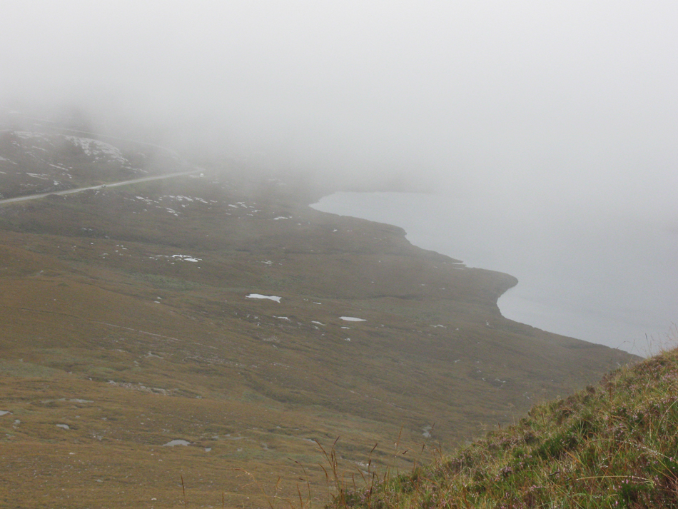 Guess what, another wet day. We sat in the van for a little while, looking at Loch na Gainmhich with the streams flowing into it looking whiter and clearer than on a dry day. Looking at the windscreen wipers clearing away the water from the windscreen.
